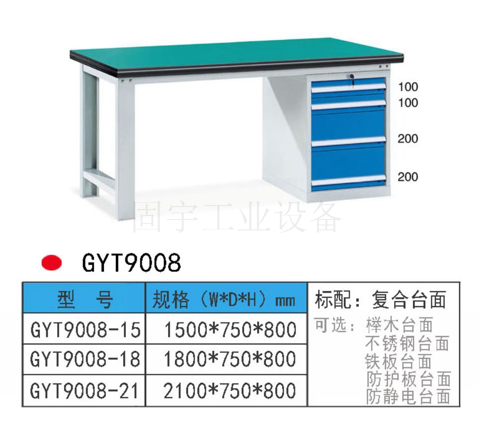 工作臺(tái)采用優(yōu)質(zhì)冷扎板精工制作而成,堅(jiān)固的工作桌框架,牢固平穩(wěn),可使工作桌承重1000kg;多種工作桌面選擇,可配合不同使用的要求;工具吊柜(箱),側(cè)柜(箱)燈架,調(diào)節(jié)腳杯,,外形美觀;層板,抽屜質(zhì)量上乘,承重大,抽屜內(nèi)可根據(jù)需要任意分隔;節(jié)約空間,適用性強(qiáng)。 范圍 工作臺(tái)適合于模具、鉗工、檢測(cè)、維修、組裝等各種不同應(yīng)用場(chǎng)合,具有良好的耐腐蝕性,耐臟性,抗沖擊性和承重能力強(qiáng)。桌面經(jīng)特殊處理,具有防腐、抗沖擊力強(qiáng)等特點(diǎn),多種桌面的選擇,可配合不同的使用要求;所配置的抽屜、柜門(mén)方便使用者存儲(chǔ)工具;桌角上預(yù)留電源孔,方便安裝電源插座。工作臺(tái)(桌)分為輕型(可承重300公斤),中型和重型工作臺(tái)(桌)可承重1000公斤及特制的工作臺(tái)??筛鶕?jù)需要靈活地配置各種吊柜、單柜、雙柜等,可加裝掛板,電器板,燈頂板、調(diào)節(jié)腳杯,輪子,擱板等桌上部件,具有多種選擇,能夠滿(mǎn)足各種工位的需求。 工作臺(tái)材質(zhì)采用優(yōu)質(zhì)冷軋鋼板,表面采用靜電噴涂處理而制成,堅(jiān)固的工作桌框架,牢固平穩(wěn),可使工作桌臺(tái)面均勻承重達(dá)到1000kg。桌面有多種材質(zhì)組成,適用于各行業(yè)辦公場(chǎng)所??膳浜瞎ぞ吖?,吊柜,掛板,單開(kāi)門(mén)柜使用。抽屜、承辦承重大,性能好,抽屜里可根據(jù)需求配置分隔條 工作臺(tái)分類(lèi):根據(jù)臺(tái)面的不同分為:櫸木工作臺(tái)、鋼板合成工作臺(tái)、防靜電工作臺(tái)、高分子工作臺(tái);根據(jù)承重的不同分為:輕型工作臺(tái)、中型工作臺(tái)、承重型工作臺(tái);根據(jù)功能的不同分為:多功能工作臺(tái)、帶吊柜工作臺(tái)等等。 臺(tái)面優(yōu)勢(shì) 復(fù)合臺(tái)面特性臺(tái)面平整度高,撓曲度為0.8mm。表面2mm厚度為高分子材料,使臺(tái)面耐酸堿、耐磨、耐油。臺(tái)面采用高壓纖維板,使臺(tái)面更具有抗沖擊性。特別的圓弧桌角,不易受撞擊損壞。高強(qiáng)度塑膠包邊堅(jiān)固、實(shí)用、不易損壞、不易脫落。櫸木桌面特性桌板使用櫸木與防水膠經(jīng)加壓制造而成。表面光滑平整,美觀不易變型,耐油、耐熱、耐酸、耐堿,適合一般工廠作業(yè)與精密模具維修,儀器置放與檢測(cè)等用途。不銹鋼包面特性桌板使用高壓合成板,表面包1-2mm砂面不銹鋼板,以達(dá)美觀耐用。耐高溫、耐磨損、耐油、使用壽命長(zhǎng),為多功能桌板,適合一般工廠、食品業(yè)、研究室、電子廠無(wú)塵室使用。輕型工作臺(tái)可承重300kg-500KG防火板臺(tái)面特性輕巧、美觀、耐磨、防火。層壓板臺(tái)面特性工作桌面平整,變型小,強(qiáng)度高,抗沖擊性好。 標(biāo)準(zhǔn)顏色 產(chǎn)品顏色 標(biāo)準(zhǔn)的顏色可分為6種:淺藍(lán)色(RAL5015), 電腦灰(RAL7035), 機(jī)床綠(RAL6011),深藍(lán)色(RAL5017)。